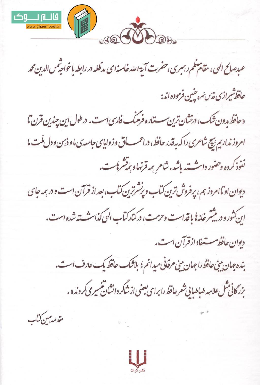 • عنوان فرعی: دستور العمل‌ ها و نصایح سلوکی خواجه شمس‌ الدین‌ محمد حافظ‌ شیرازی